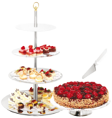 Čtyřpatrový etažér na dezerty v nerezovém provedení. Hmotnost 4,7.